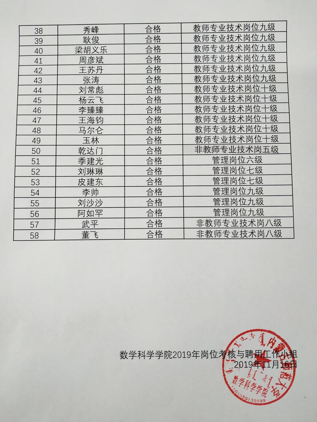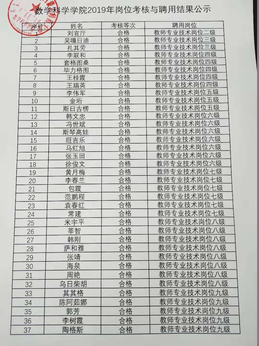 数学科学开元(中国)2019年岗位考核与聘用结果公示