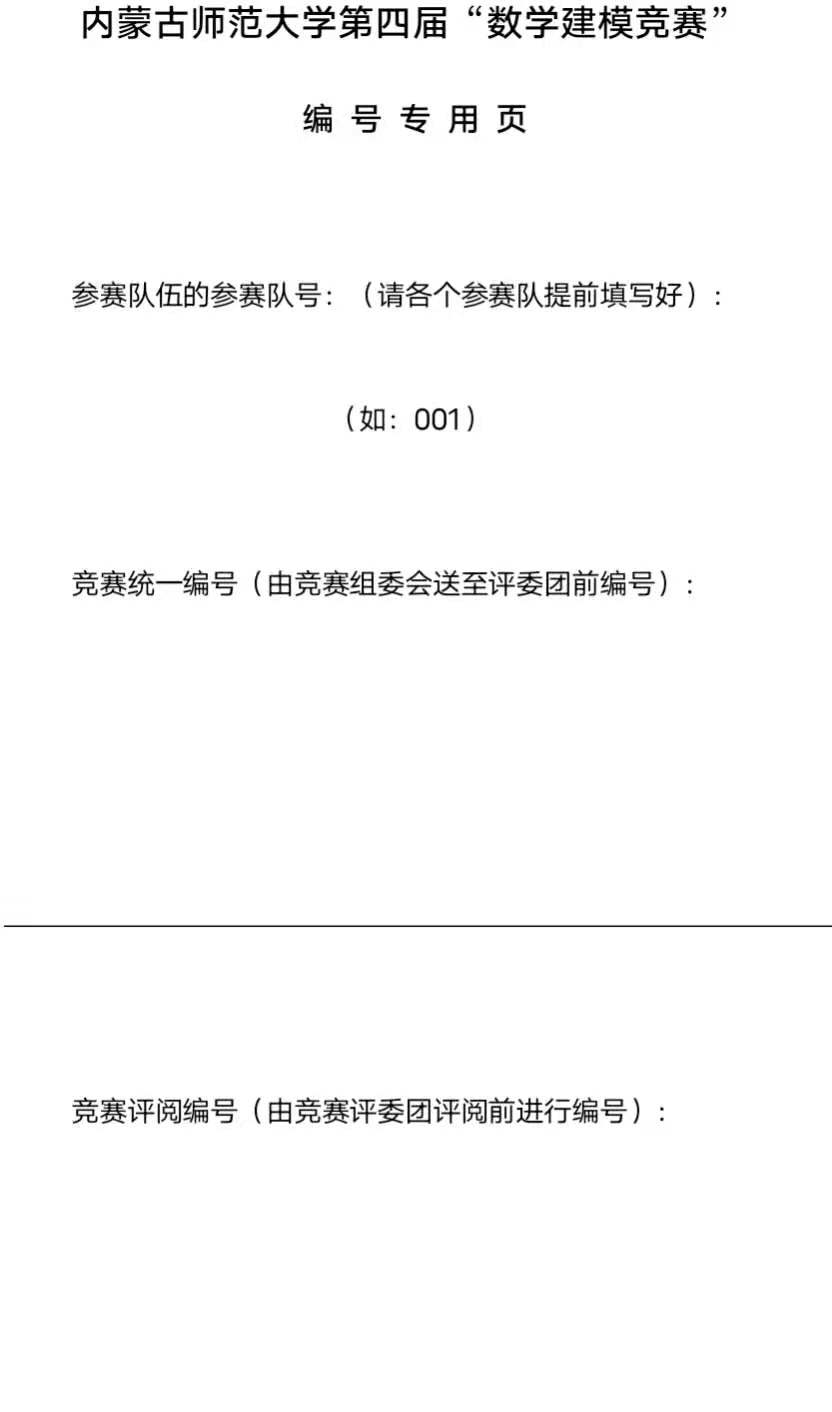 内蒙古师范大学第四届“数学建模竞赛”编号专用页