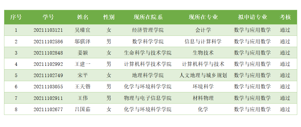 日,开元(中国)通过考试、考核,确定拟接收转专业学生名单如下