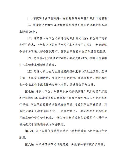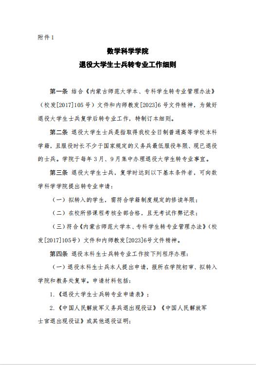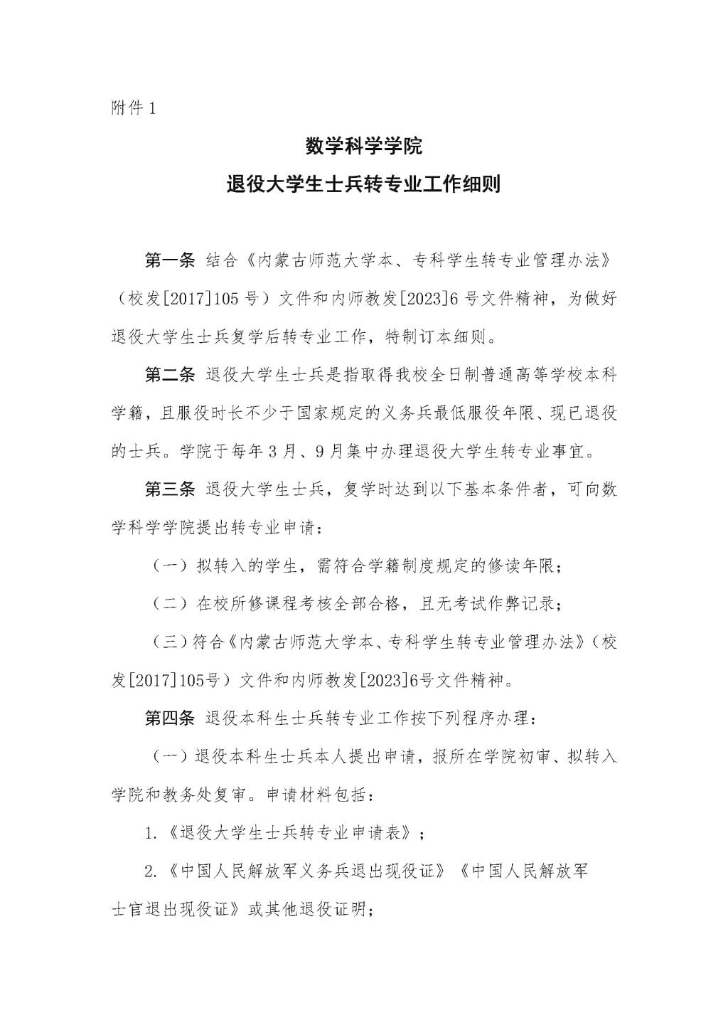附件1 《数学科学开元(中国)退役大学生士兵转专业工作细则》
