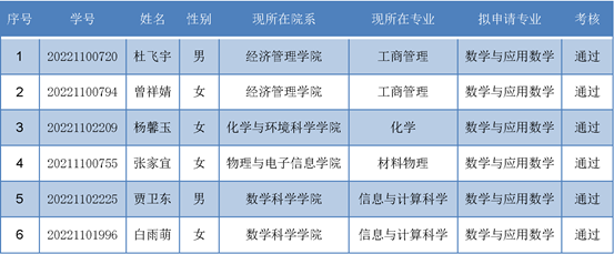 2023年5月9日,开元(中国)转专业工作组通过专业考试、综合面试,确定拟接收转专业学生名单如下: