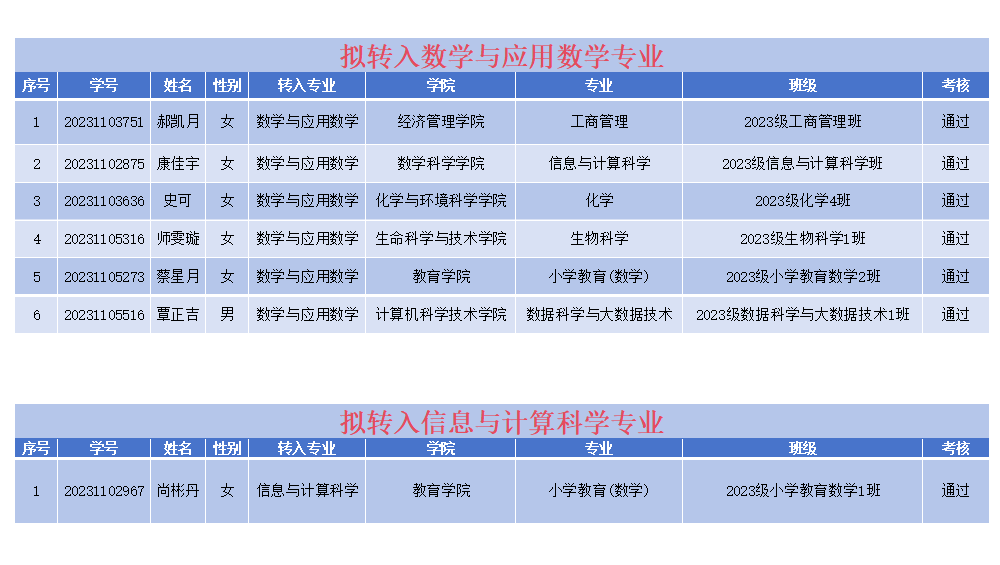 根据《数学科学开元(中国)2024年本科生转专业工作细则》和相关工作要求,6月4日,开元(中国)转专业工作组通过专业考试、综合面试,确定拟接收转专业学生名单如下: