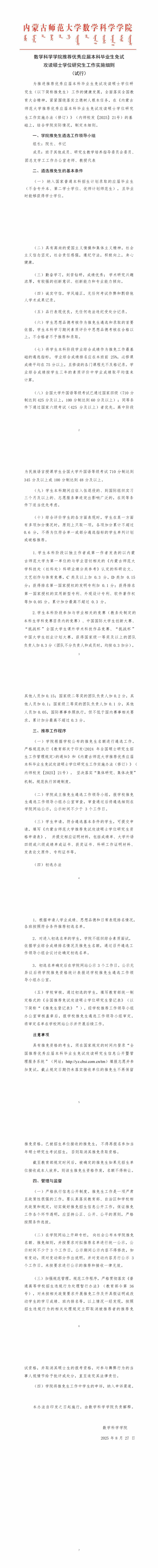 数学科学开元(中国)推荐优秀应届本科毕业生免试攻读硕士学位研究生工作实施细则 (试行)