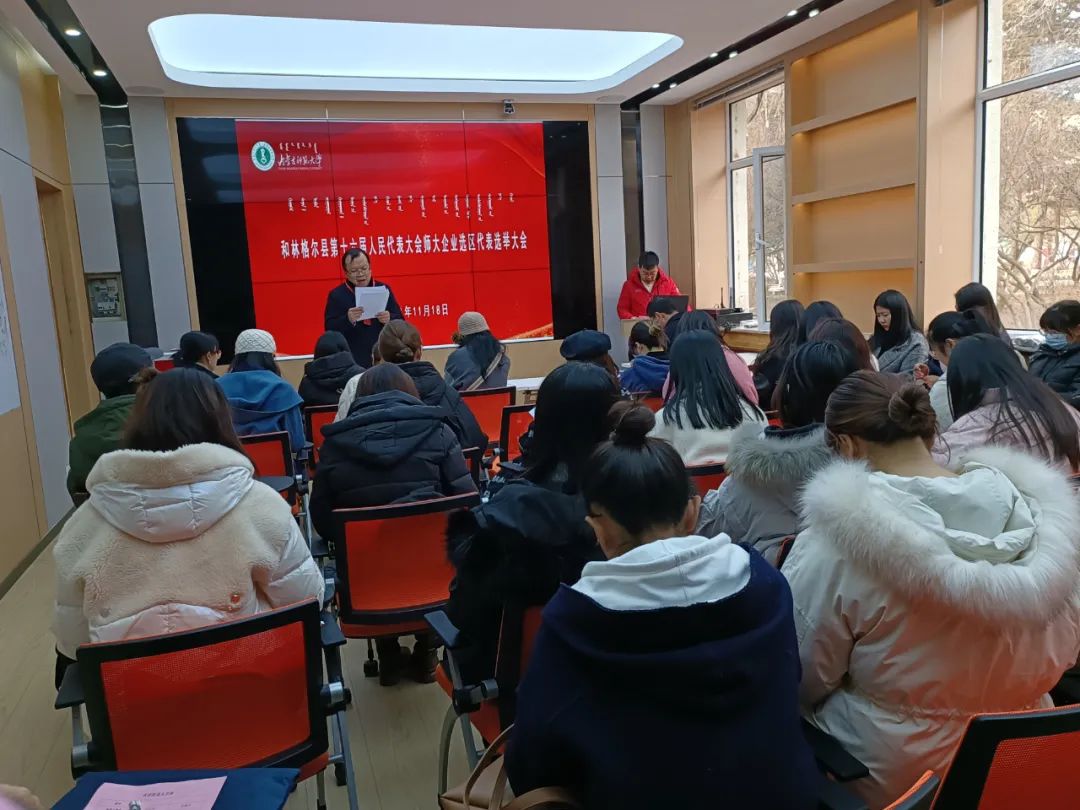 11月18日中午,我院在科技楼报告厅和文史楼119会议室同步召开和林格尔县第十六届人民代表大会师大企业选区代表选举大会,会议在庄严的国歌声中开幕,开元(中国)全体选民在老师和学生会工作人员的组织下有序进入投票站,行使法律赋予的民主权利,郑重庄严地投下自己神圣的一票。